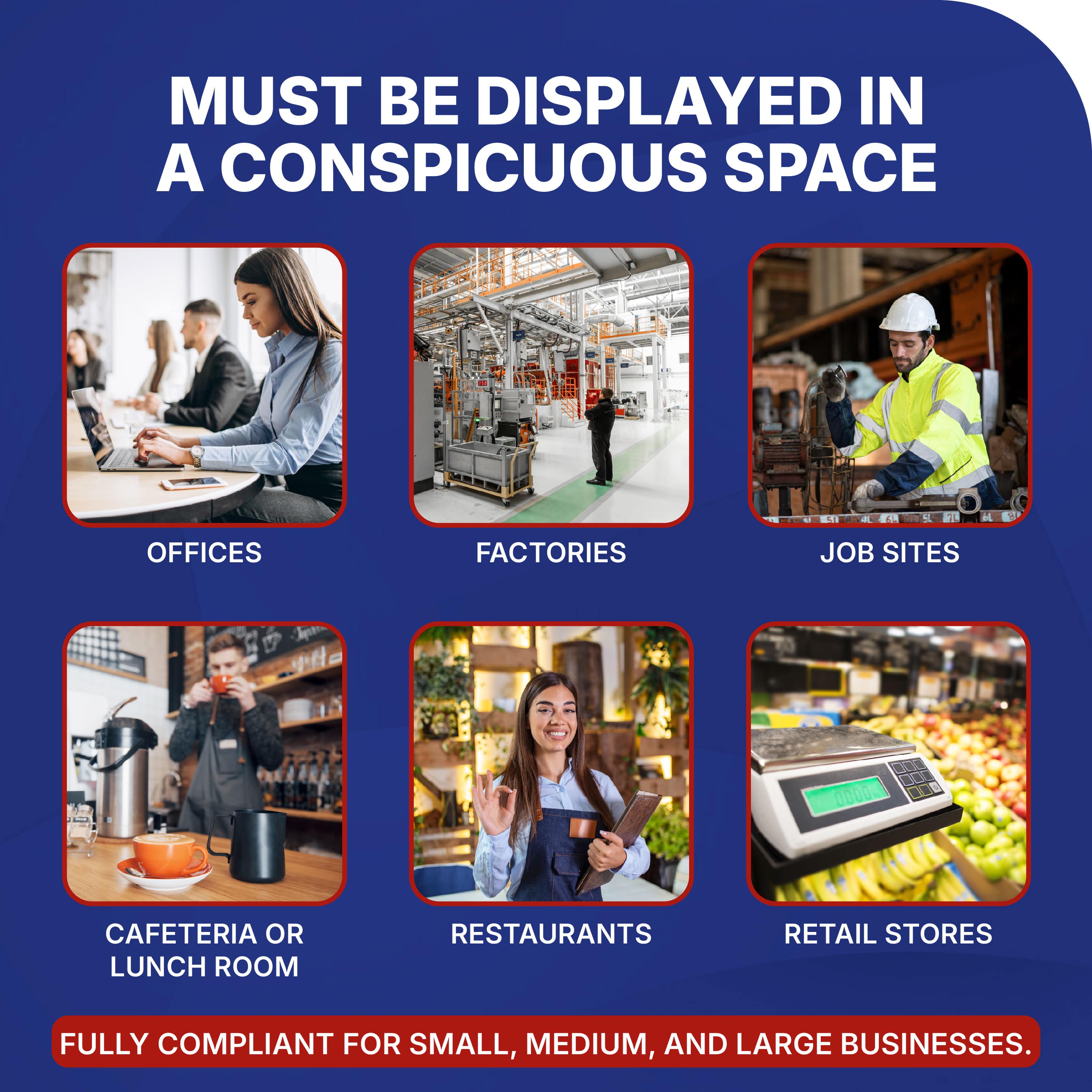Our Labor Law Posters are crafted to help employers maintain full compliance with both state and federal standards. The professional design ensures the information is easy to read and understand, while the durable materials make it suitable for long-term use in employee areas like break rooms or near time clocks.
