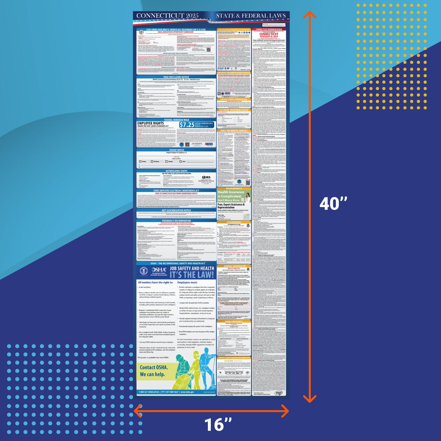 An All-in-One labor law poster that includes Federal, State, and OSHA-required labor laws printed on a 16x40" double-laminated heavy-duty sheet. Designed to ensure businesses comply with mandatory state and federal labor law requirements, this high-quality, full-color poster includes all essential postings as well as state-specific regulations tailored to your location. Its professional design ensures the information is easy to read and understand, while the durable materials make it suitable for long-term use in employee areas like break rooms or near time clocks. This product is continuously updated to reflect the latest legal changes, providing a simple and effective way for employers to meet compliance obligations and keep employees informed about their rights and responsibilities.