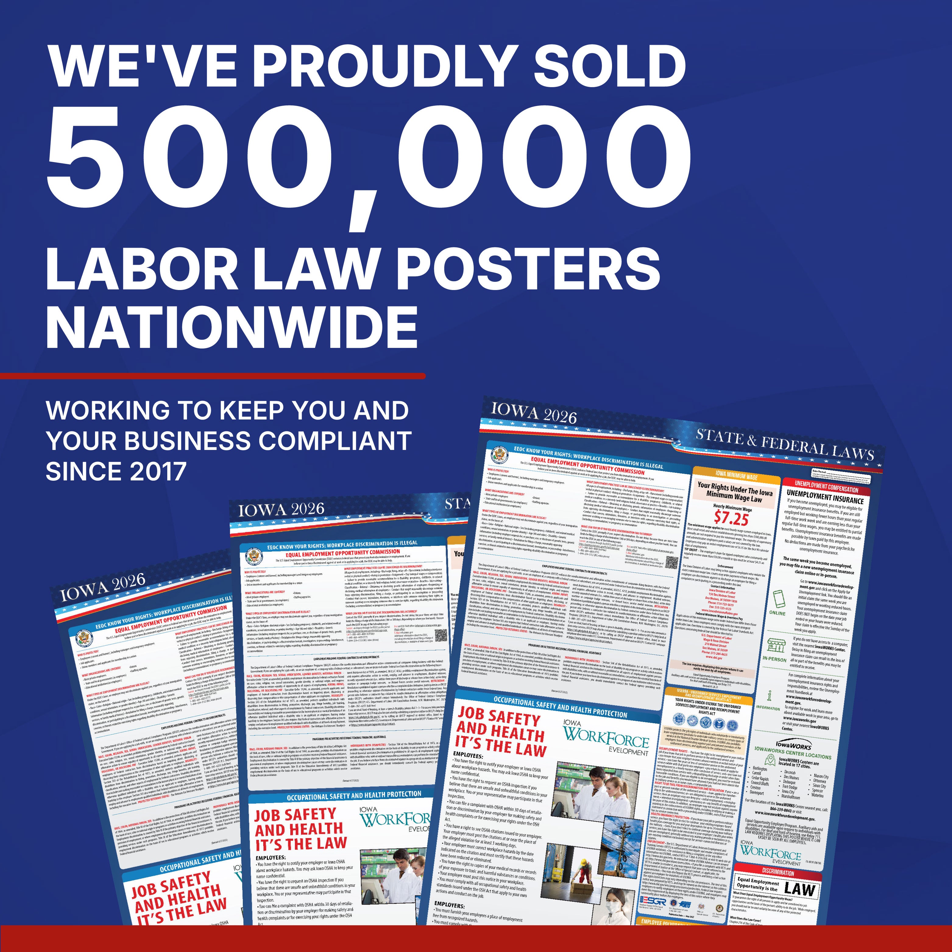 Regulations change throughout the year, and staying compliant can be challenging. Our posters are always up to date, ensuring you meet every requirement, from federal to state-specific updates. Let us handle compliance while you focus on your business.