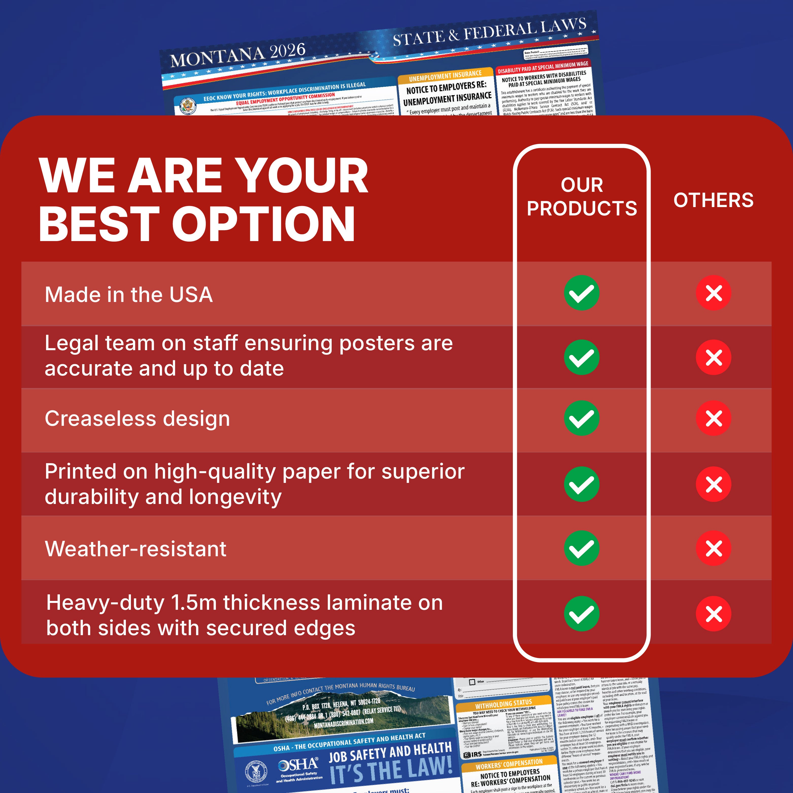 Get your Montana 2026 State & Federal Labor Law Poster today — one purchase, full coverage, complete peace of mind for your Montana business.