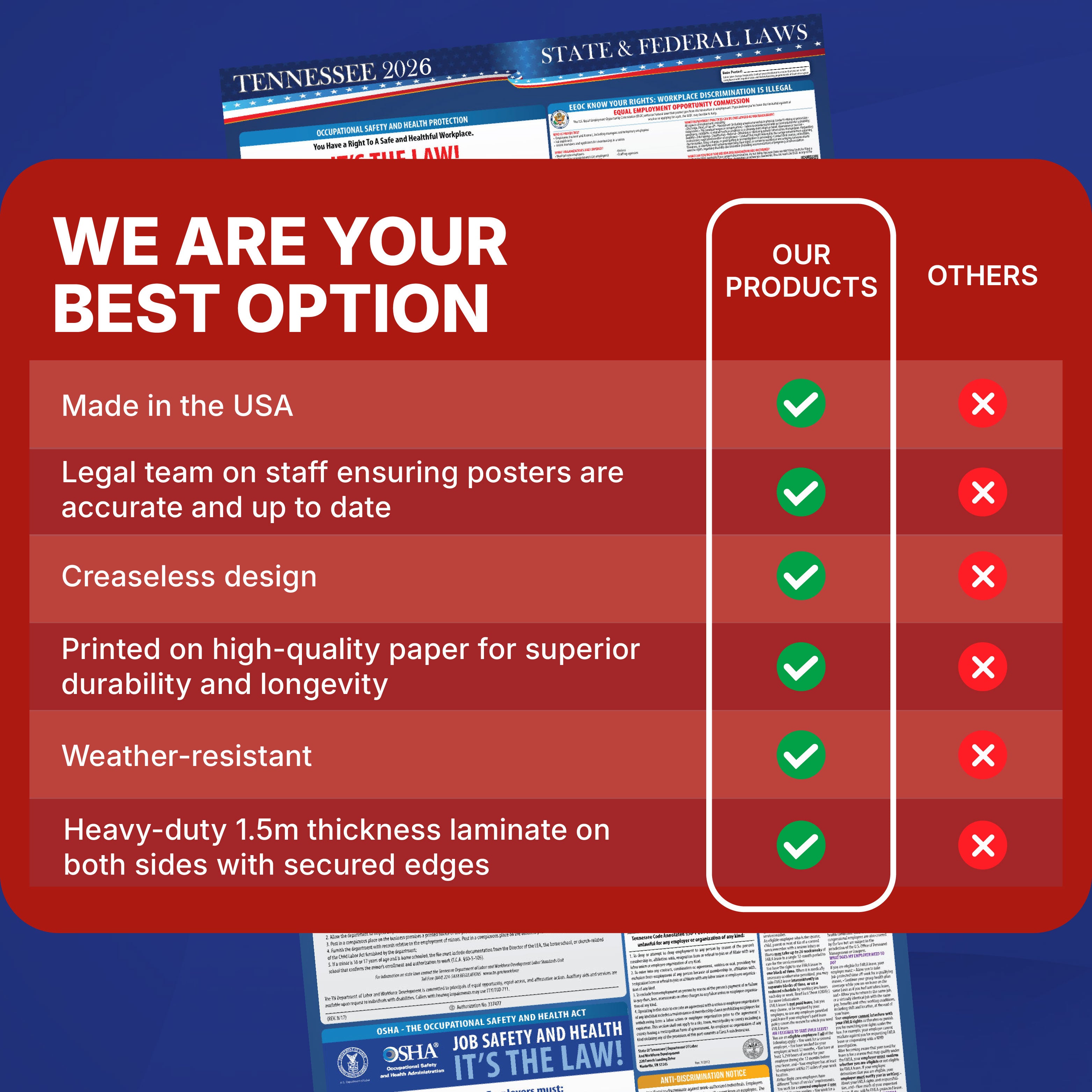Secure your Tennessee 2026 labor law poster today and ensure your workplace remains informed and compliant with the latest regulations.