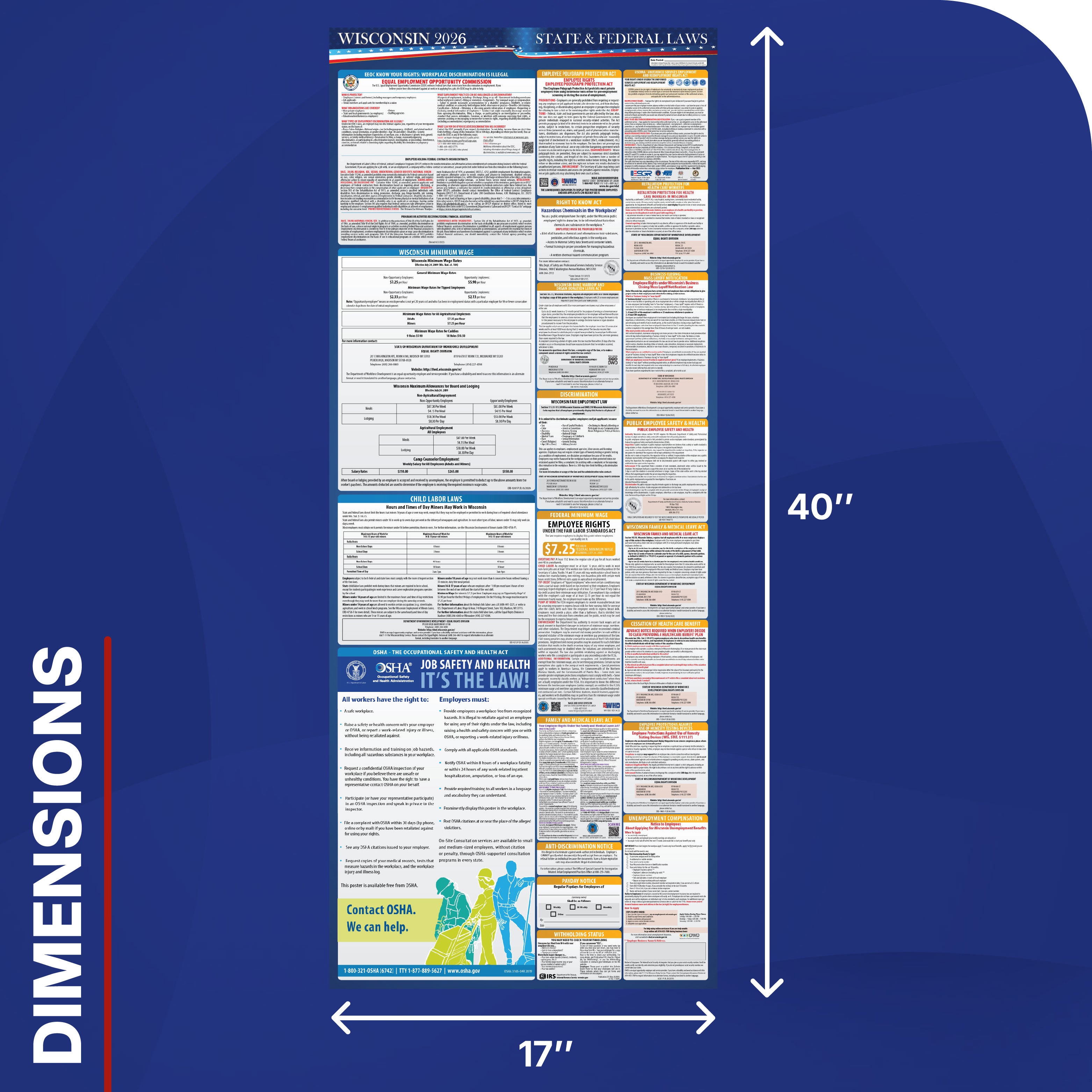 Ensure your business stays compliant with state and federal posting requirements with the updated Wisconsin 2026 State Labor Law Poster. This all-in-one compliance poster includes the latest mandatory Wisconsin labor law updates along with the required federal postings, helping employers meet workplace obligations with ease.