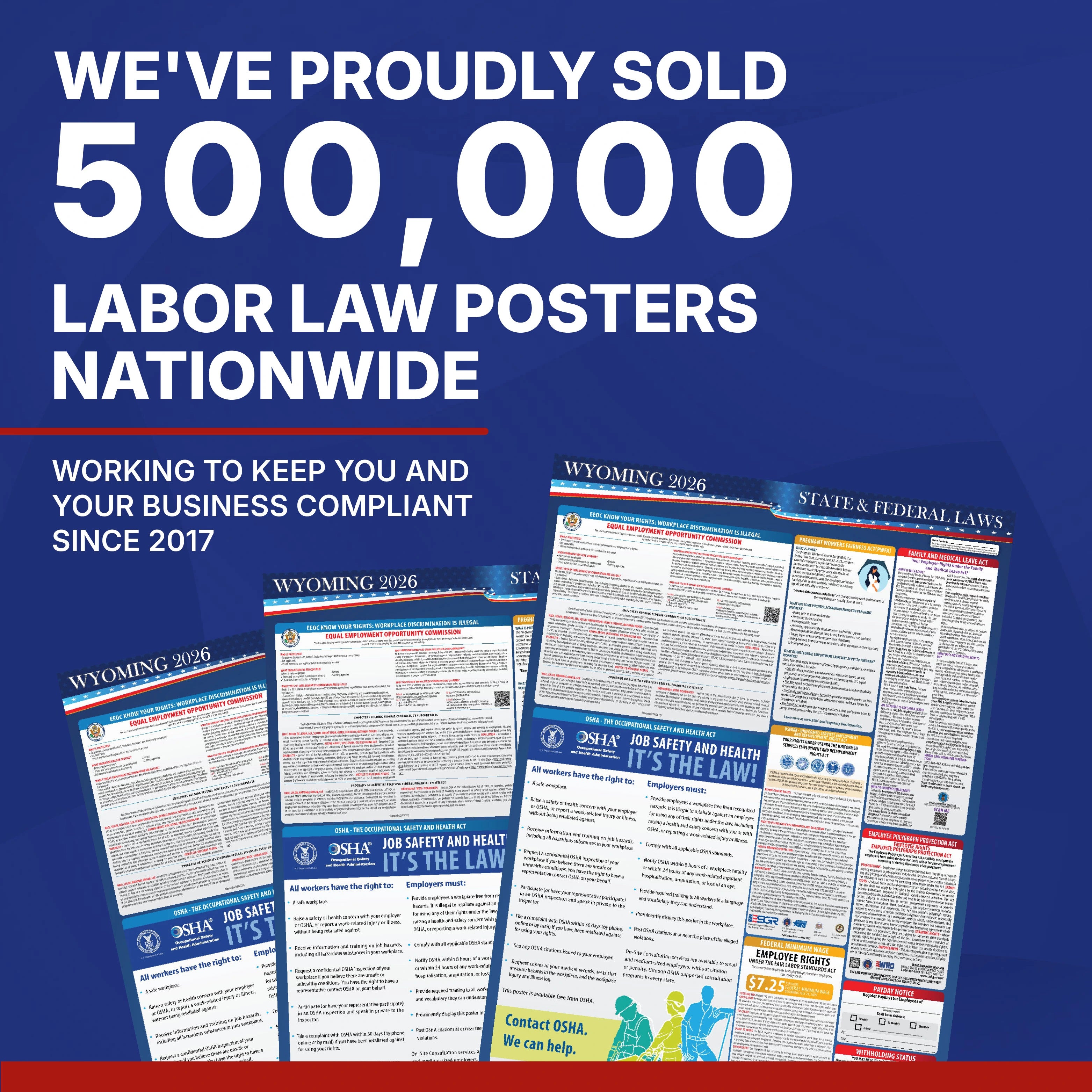 Stay compliant with all the latest Wyoming labor law changes by ensuring your workplace displays the most current and legally required federal, state and OSHA postings.