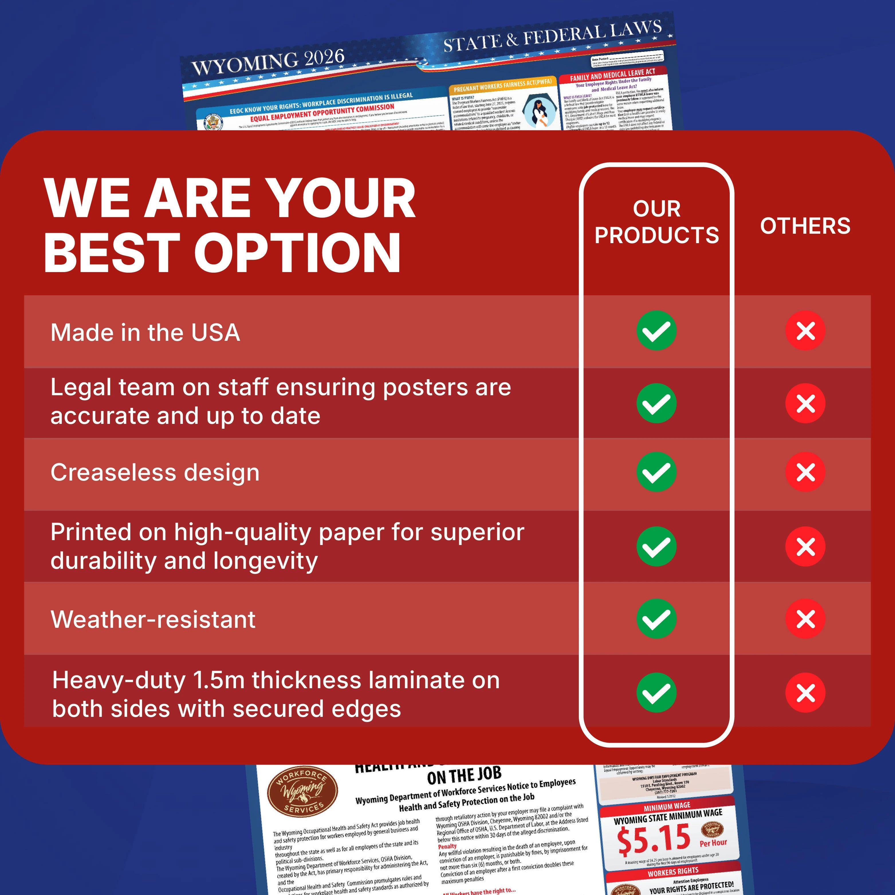 Invest in the Wyoming 2026 labor law poster for complete compliance peace of mind. With its updated content, durable design, and optional automated update plan, it’s the proactive choice for staying legally covered, informed, and protected.
